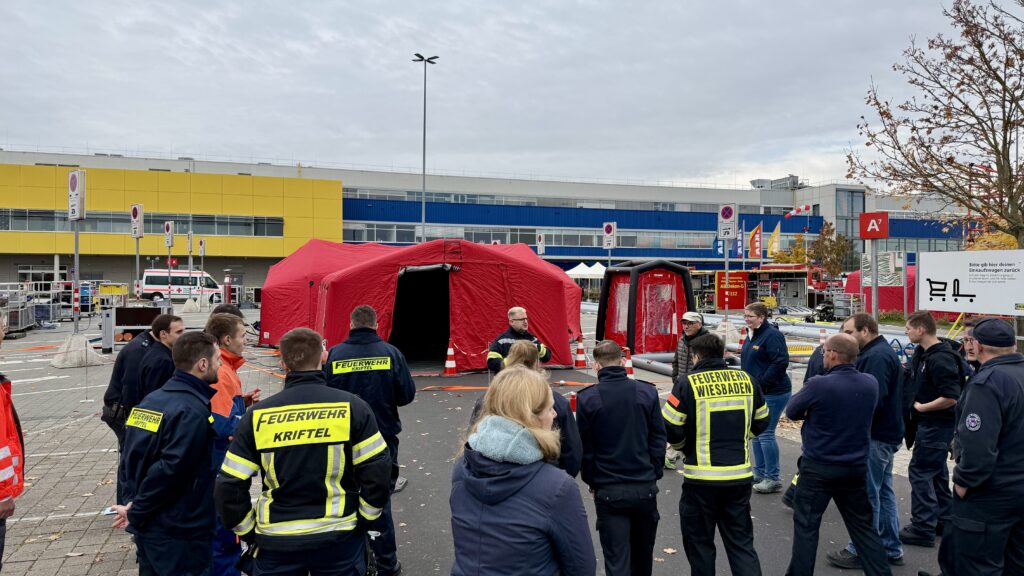 Am vergangenen Sonntag fand auf dem Parkplatz des IKEA in Wallau eine gemeinsame Übung der drei Dekontaminations-Einheiten des Main-Taunus-Kreises statt. Ziel der Ausbildung war es, die Zusammenarbeit zwischen den einzelnen Modulen weiter zu verbessern und die bestehenden Konzepte in der Praxis zu überprüfen.