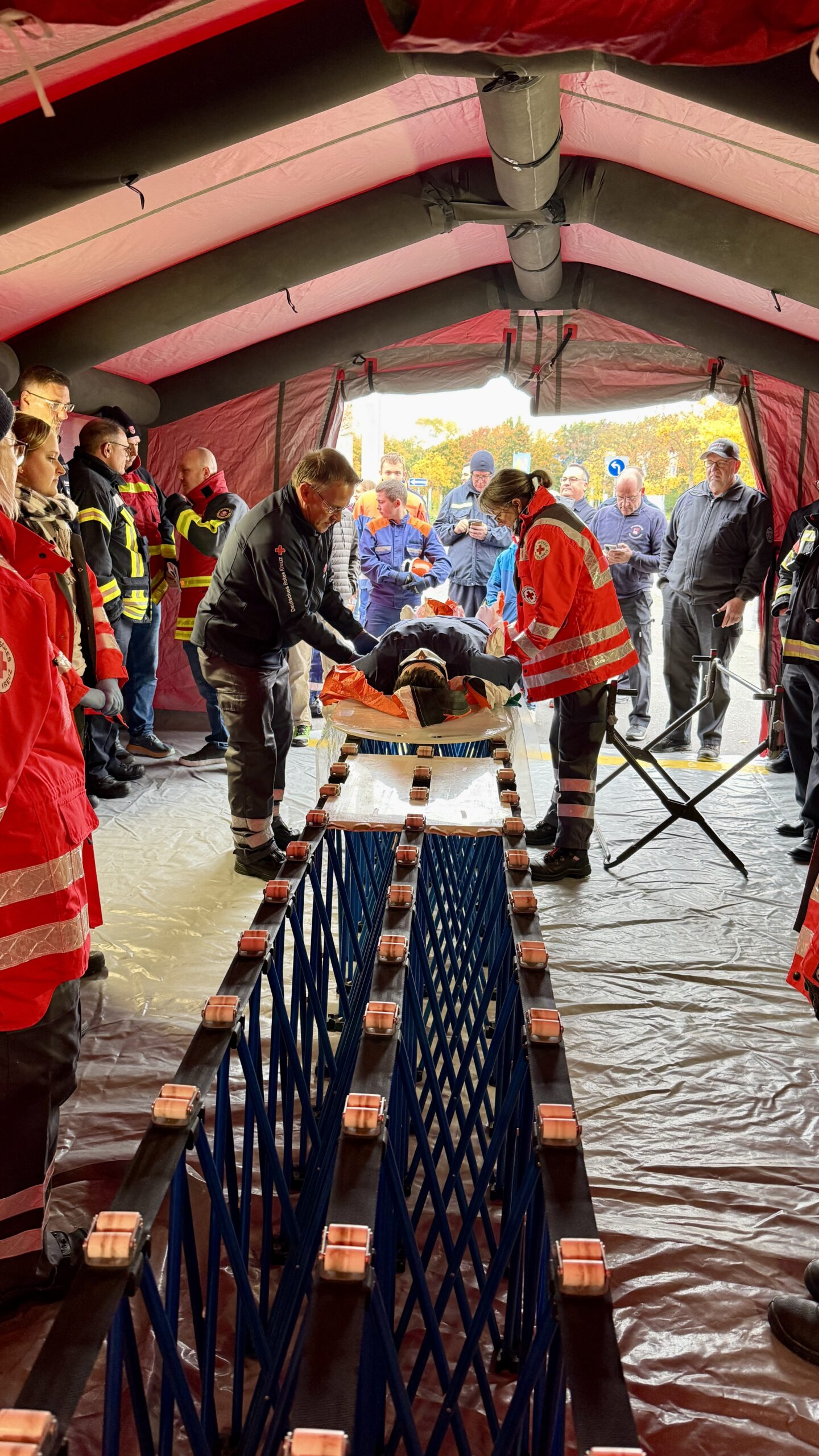 Nach Abschluss der praktischen Teile waren auch Führungskräfte aus Feuerwehr und Rettungsdienst sowie Vertreter benachbarter Kreise eingeladen, sich über den Aufbau und die Abläufe zu informieren. Der Austausch bot Gelegenheit, Kontakte zu vertiefen und neue Synergien zu schaffen – insbesondere im Hinblick auf überörtliche Unterstützungsmaßnahmen bei Gefahrstofflagen.