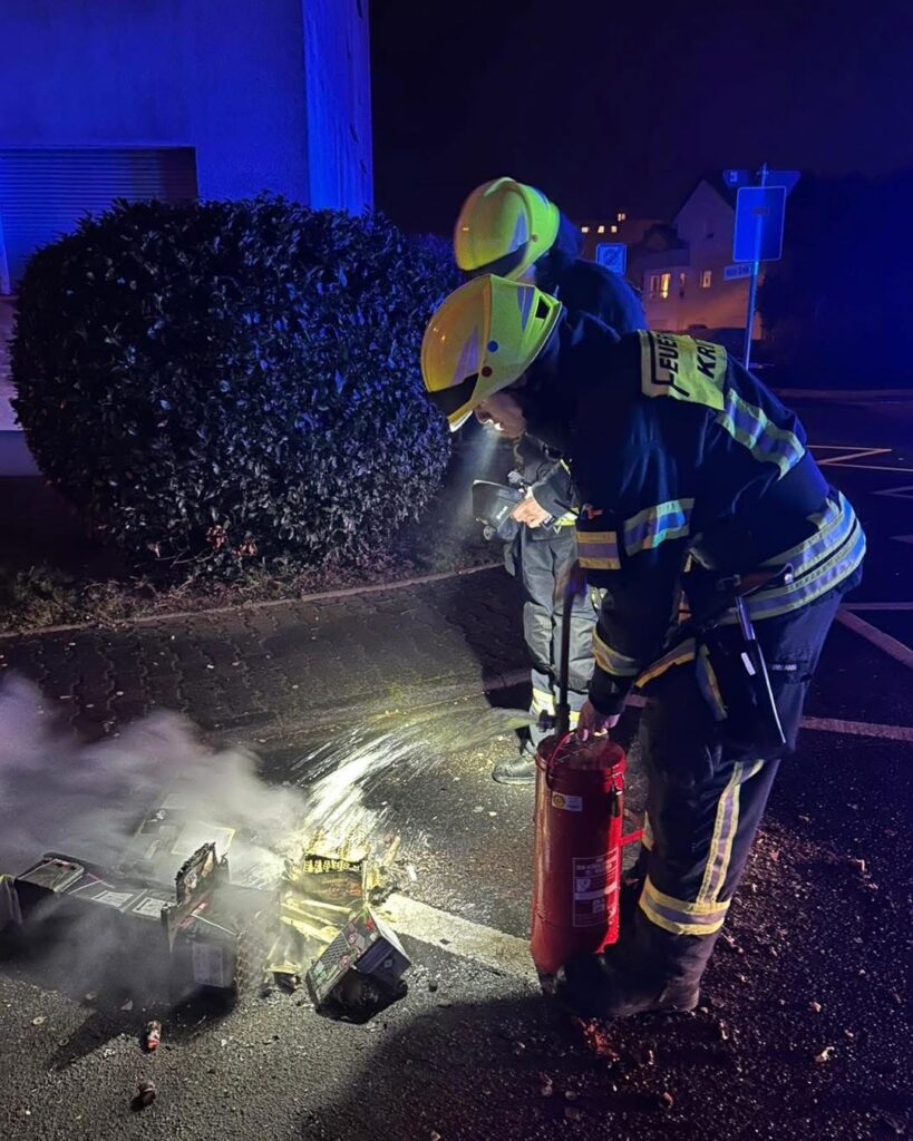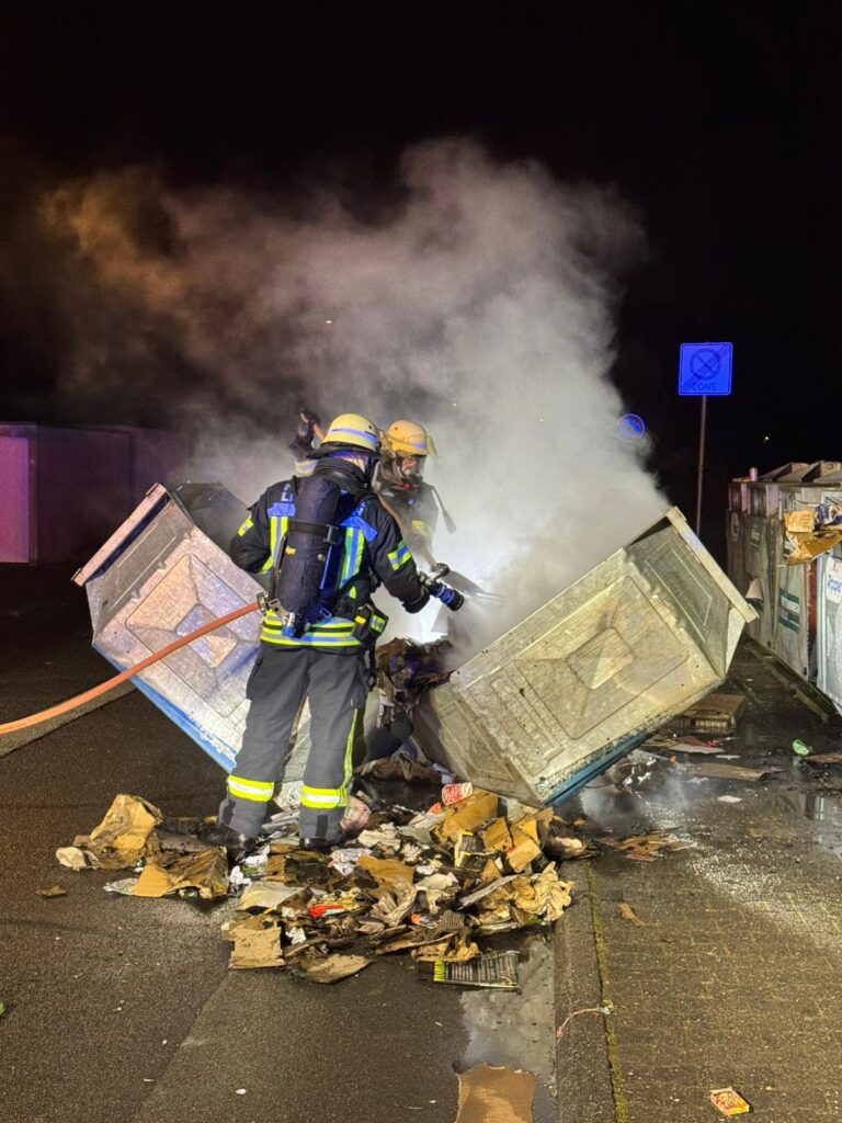 - Eschborn: Die Feuerwehr Eschborn wurde im Zeitraum vom 31.12.2025, 16:30 Uhr, bis 01.01.2026, 06:00 Uhr zu 11 Einsätzen alarmiert, davon 8 im Stadtgebiet. Bereits am Nachmittag brannte ein Baumstumpf, im weiteren Verlauf kam es mehrfach zu Bränden von Mülltonnen, Mülleimern und einem Altkleidercontainer. Auch im neuen Jahr beschäftigten weitere Brandeinsätze die Einsatzkräfte.