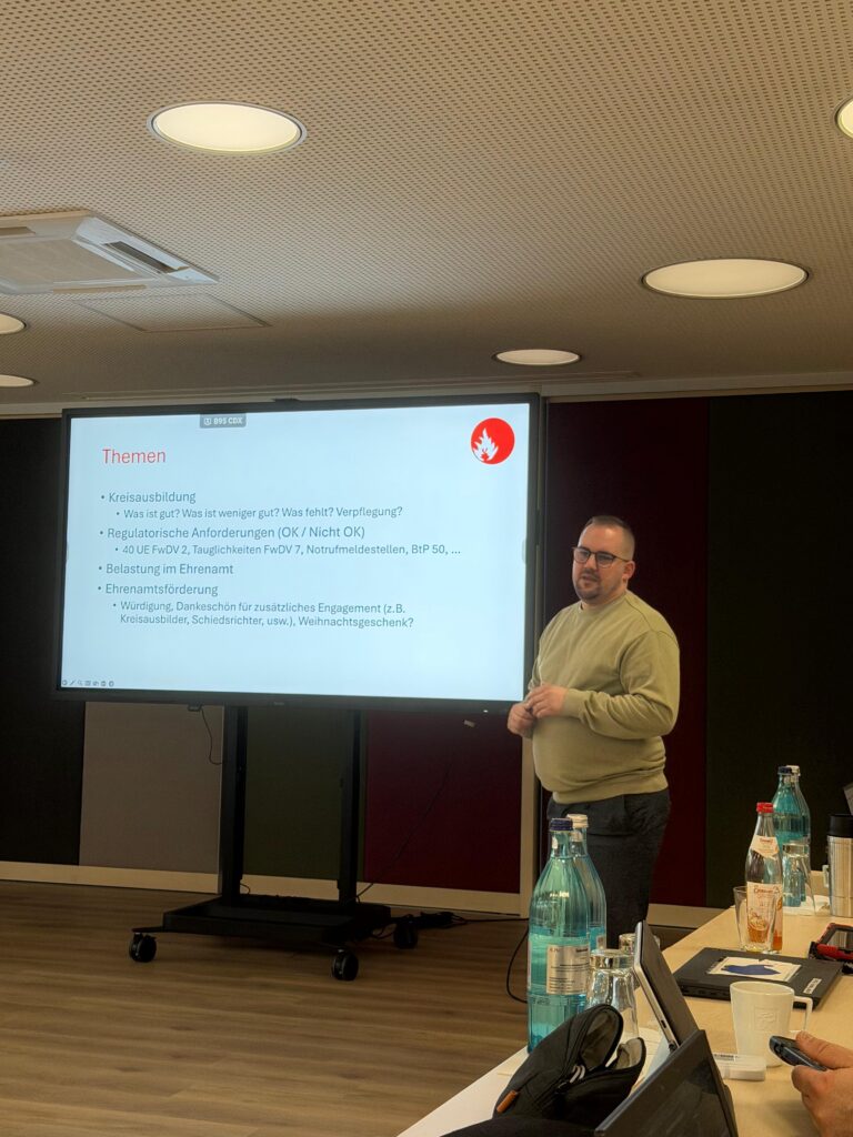 Breiten Raum nahm zudem die Situation des Ehrenamtes ein. Die Teilnehmer tauschten sich über die zunehmende Belastung freiwillig engagierter Einsatzkräfte aus und diskutierten mögliche Ansätze zur Stärkung und Anerkennung des Engagements. Dazu gehörten beispielsweise Ideen zur besseren Würdigung zusätzlicher Funktionen wie Kreisausbilder oder Schiedsrichter sowie mögliche Formen der Wertschätzung für besonderes Engagement.