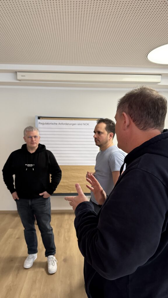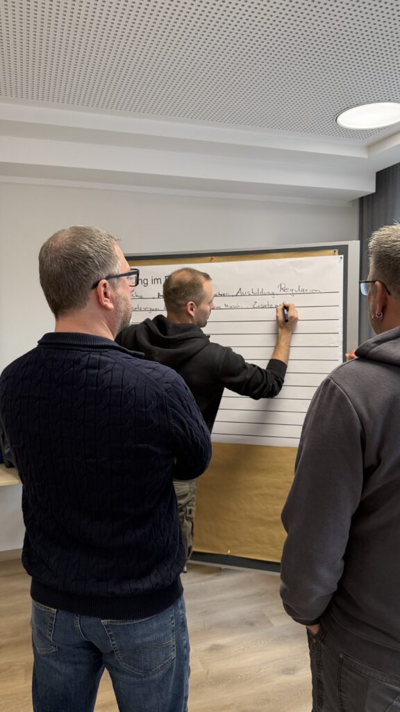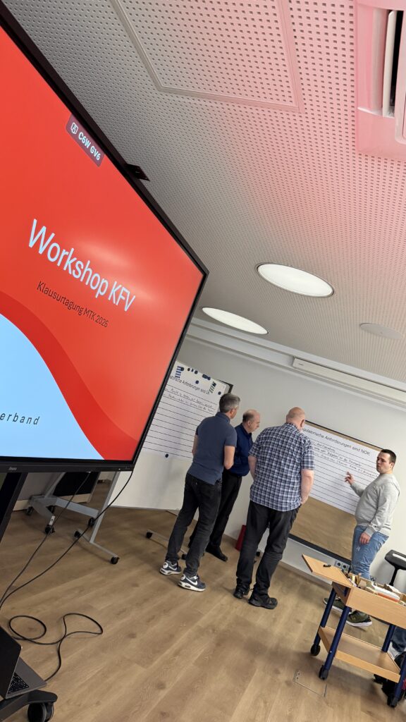 Der Samstag war als Workshop des Verbandsausschusses angelegt und bot Raum für einen intensiven fachlichen Austausch. Ein Schwerpunkt lag auf der Kreisausbildung. Die Teilnehmerinnen und Teilnehmer diskutierten, welche Angebote sich bewährt haben, wo Verbesserungsbedarf besteht und welche Inhalte künftig ergänzt werden sollten. Auch organisatorische Fragen – etwa zur Verpflegung bei Lehrgängen – wurden angesprochen. Ein weiteres Themenfeld waren regulatorische Anforderungen im Feuerwehrdienst. Diskutiert wurden unter anderem Vorgaben aus den Feuerwehr-Dienstvorschriften, etwa zu Ausbildungsumfängen nach FwDV 2 oder zu Tauglichkeitsuntersuchungen nach FwDV 7.