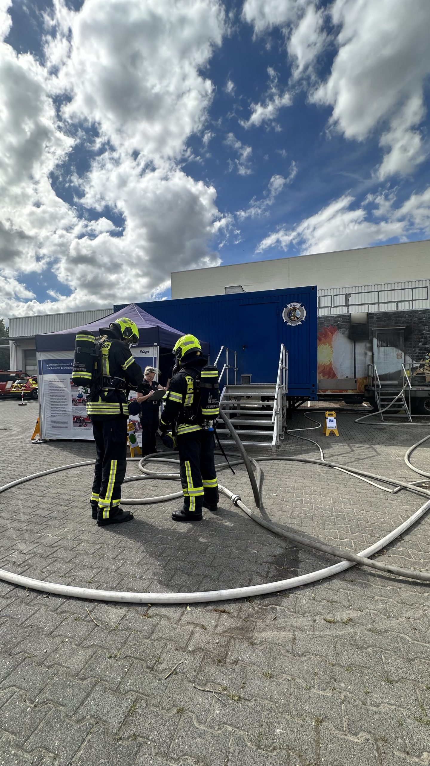 Die mobile gasbefeuerte Brandsimulationsanlage „Dräger Fire Dragon 9000“ ermöglicht eine realitätsnahe Simulation verschiedener Brandarten – darunter Dach-, Wohnungs- und Kellerbrände. Die Anlage verfügt über vernebelbare