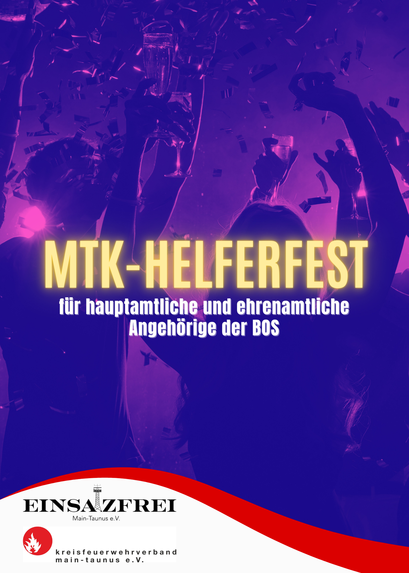 Am Freitag, 14. November 2025, findet in der Stadthalle Hofheim das MTK-Helferfest statt. Organisiert vom Kreisfeuerwehrverband Main-Taunus e.V. und Einsatzfrei Main-Taunus e.V., richtet sich die Veranstaltung an alle hauptamtlichen und ehrenamtlichen Angehörigen der Behörden und Organisationen mit Sicherheitsaufgaben (BOS) im Main-Taunus-Kreis. Das Helferfest soll den Einsatzkräften für ihren unermüdlichen Dienst