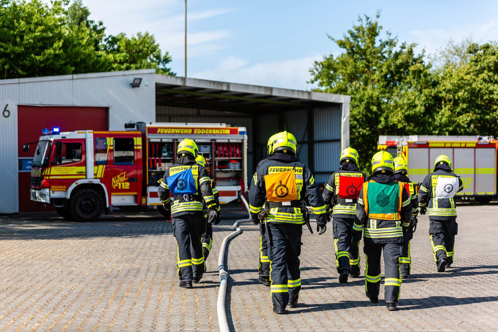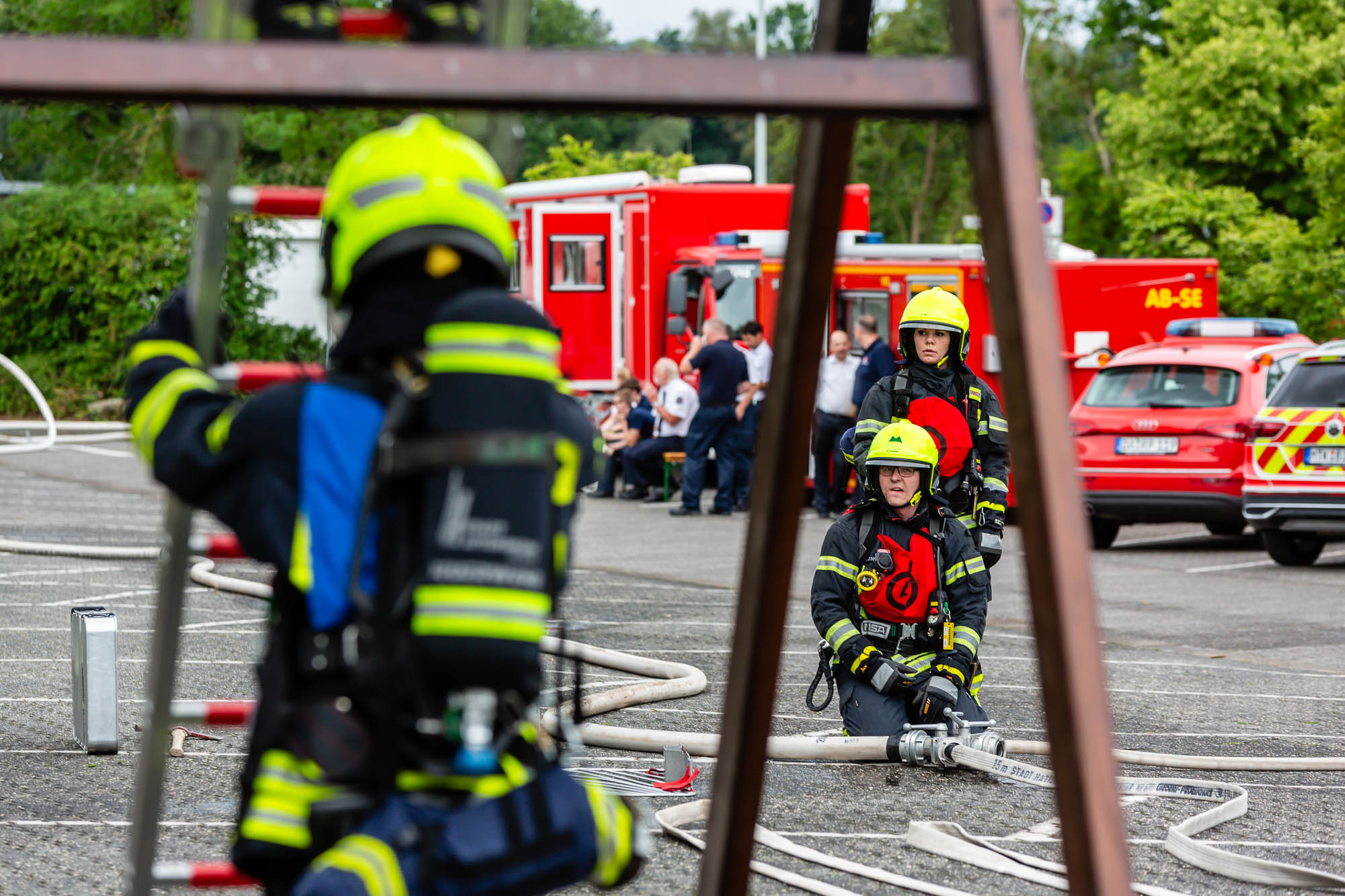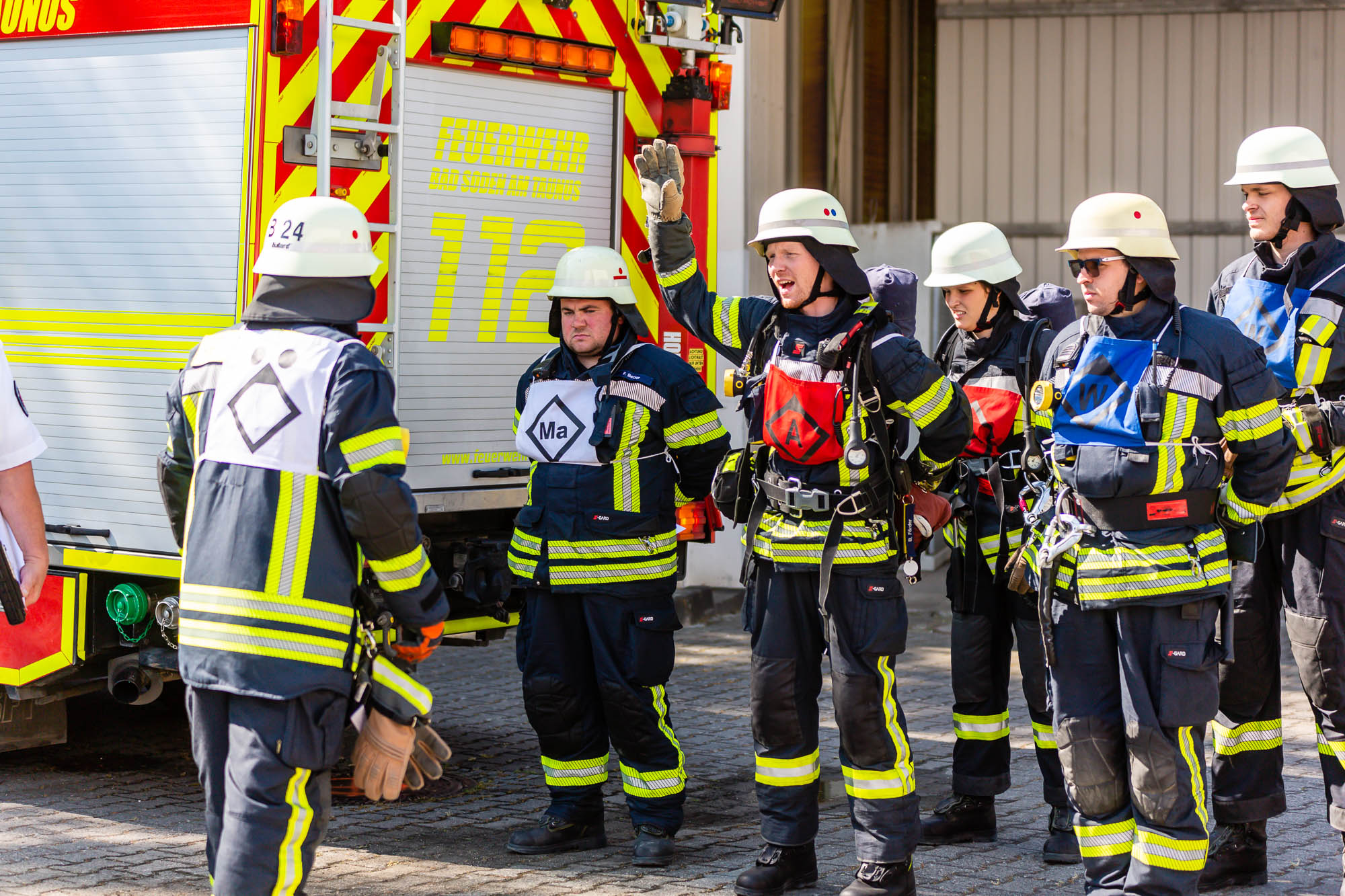 Im zweiten Angriff wird dann ein C-Strahlrohr von der Steckleiter aus zum Einsatz gebracht, wobei auch drei Fallklappen umgespritzt werden müssen. Besonderes Augenmerk bei der Übung wird auf die Einhaltung der geltenden Dienstvorschriften und die saubere Abwicklung der Funkgespräche und Rückmeldungen gelegt. Zu guter Letzt führen vier ausgeloste Teilnehmende auf Zeit feuerwehrtechnische Knoten aus. Diese Knoten gehören zum Grundwissen und können im Ernstfall enorm wichtig werden.