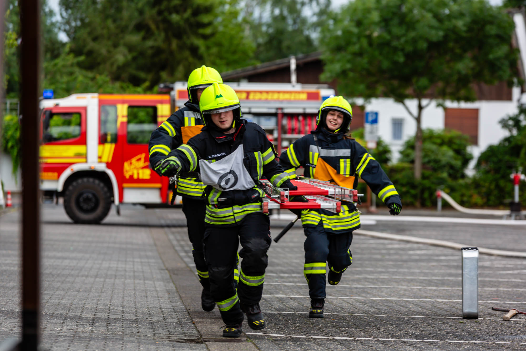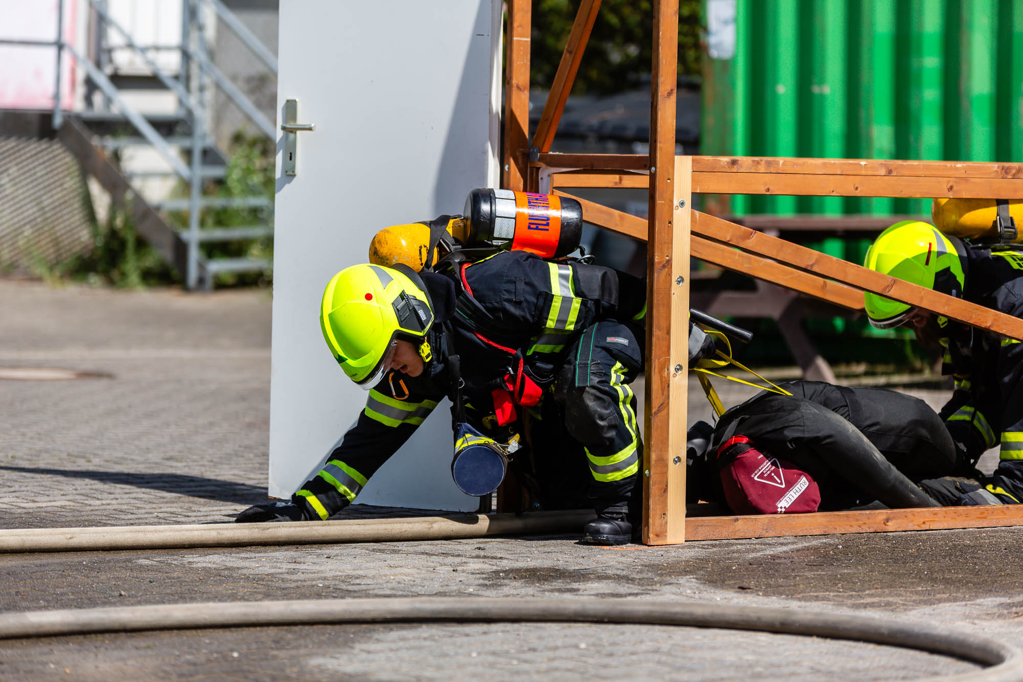 Im praktischen Teil wird ein Brandeinsatz mit Innenangriff simuliert. Hier gilt es, innerhalb der vorgegebenen Zeit eine vermisste Person in Form einer Puppe im Gebäudeinnern zu finden und zu befreien. Das Gebäude wird hier durch einen Kriechgang mit angebauter Tür dargestellt, die vorschriftsmäßig geöffnet und begangen werden muss. Im „Wohnzimmer“ angekommen muss zunächst eine Brandbekämpfung durchgeführt werden. Es sind hier drei Fallklappen umzuspritzen, bevor die dort liegende Puppe ins Freie verbracht werden kann.